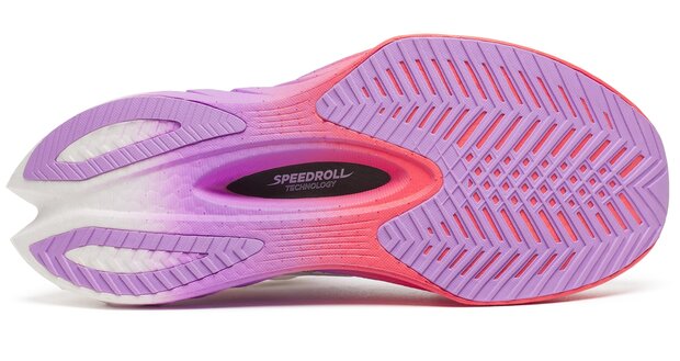 Deze hardloopschoenen zijn voorzien van een responsief dempingssysteem dat je bij elke stap vooruit helpt te bewegen. De innovatieve Speedroll-technologie creëert een rollende beweging van hiel tot teen, waardoor je energie-teruggave wordt geoptimaliseerd en vermoeidheid wordt geminimaliseerd. Dit, in combinatie met de duurzame rubberen buitenzool, zorgt voor een efficiënte en soepele hardloopervaring.