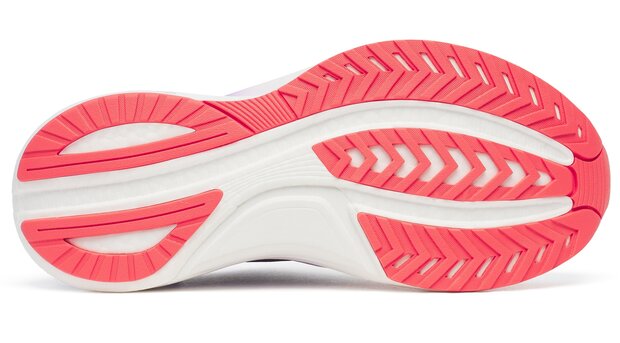 PWRRUN PB-foam en PWRRUN EVA-foam zijn door Saucony gebruikt om deze schoen te maken. Met het ultralichte PWRRUN PB-foam aan de bovenkant en het stevige, lichtgewicht PWRRUN EVA-schuim aan de onderkant, zorgen deze foams voor maximale energieteruggave en een uitstekende vering. Tijdens het hardlopen geeft het voorgevormde PWRRUN-frame goede ondersteuning en extra veerkracht. Het frame geeft een responsief gevoel terwijl de druk over de voeten wordt verdeeld. Door de diepere contouren in de tussenzool krijg je een fijnere pasvorm met een ondersteunend gevoel voor de voeten.
