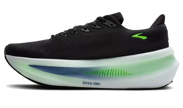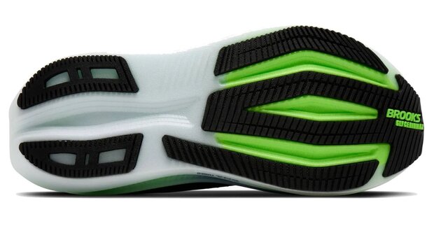 Dit model beschikt over het nieuwe DNA Tuned foam, de nieuwe generatie stikstof geïnfuseerde foam van Brooks. De dual-size celtechnologie zorgt met grotere cellen in de hiel voor een zachte landing, terwijl kleinere cellen in de voorvoet voor een responsieve afzet zorgen. De schoen heeft een GlideRoll Rocker profiel, die is voorzien van opvallend vormgegeven schuine randen en vering geometrie bij de tenen. Dit zorgt voor een optimale afwikkeling van de voet.