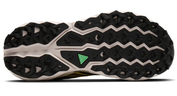 De slijtzool van dit model maakt jou trail-ready. De schoen beschikt over een TrailTack rubberen slijtzool en deze slijtzool-technologie van Brooks zorgt voor uitstekende tractie bergopwaarts en bergafwaarts. Daarnaast zorgt TrailTack voor optimale grip op gladde paden. De schoen beschikt over Green Rubber-slijtzool en is een duurzaam type rubber. Het rubber bestaat voor 25% uit gerecyclede materialen en gaat lang mee waardoor de schoen extra duurzaam is. Green Rubber zorgt voor goede grip en enorme tractie, zo kan jij op snelheid blijven hardlopen.